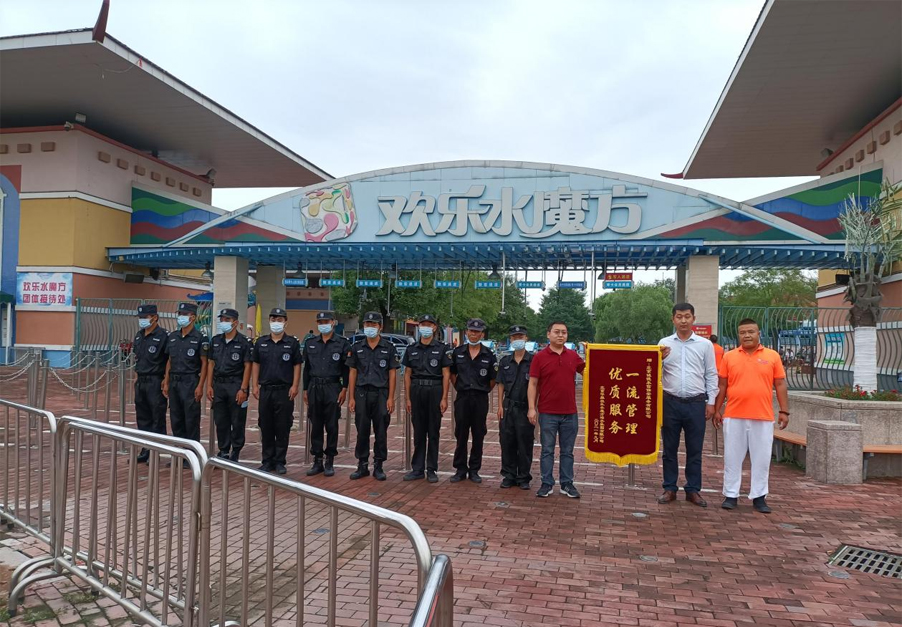 9月5日下午,我司收到北京华旅欢乐水魔方嬉水乐园有限公司送来写有“一流管理,优质服务”的致谢锦旗,这是对我司安保工作致以最崇高的敬意。一面锦旗,看似简单,但它凝聚着人民群众对安保人员的莫大鼓励,安保人员纷纷表示,赠送的锦旗既是鼓舞,更是鞭策。